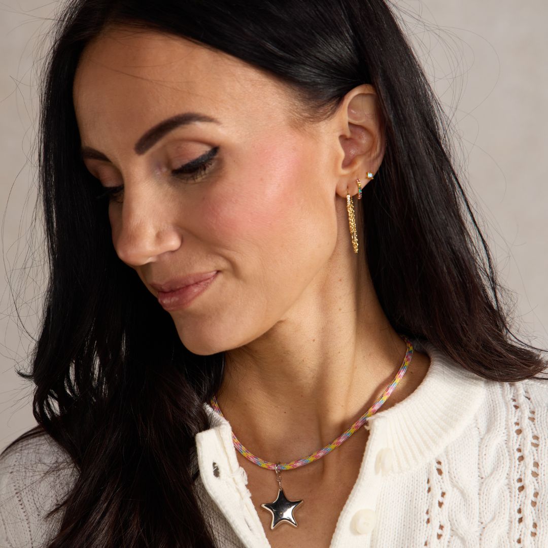 Safety Pin Necklace, Pearl Chain Huggie with Cuff & Thea Chain Huggies