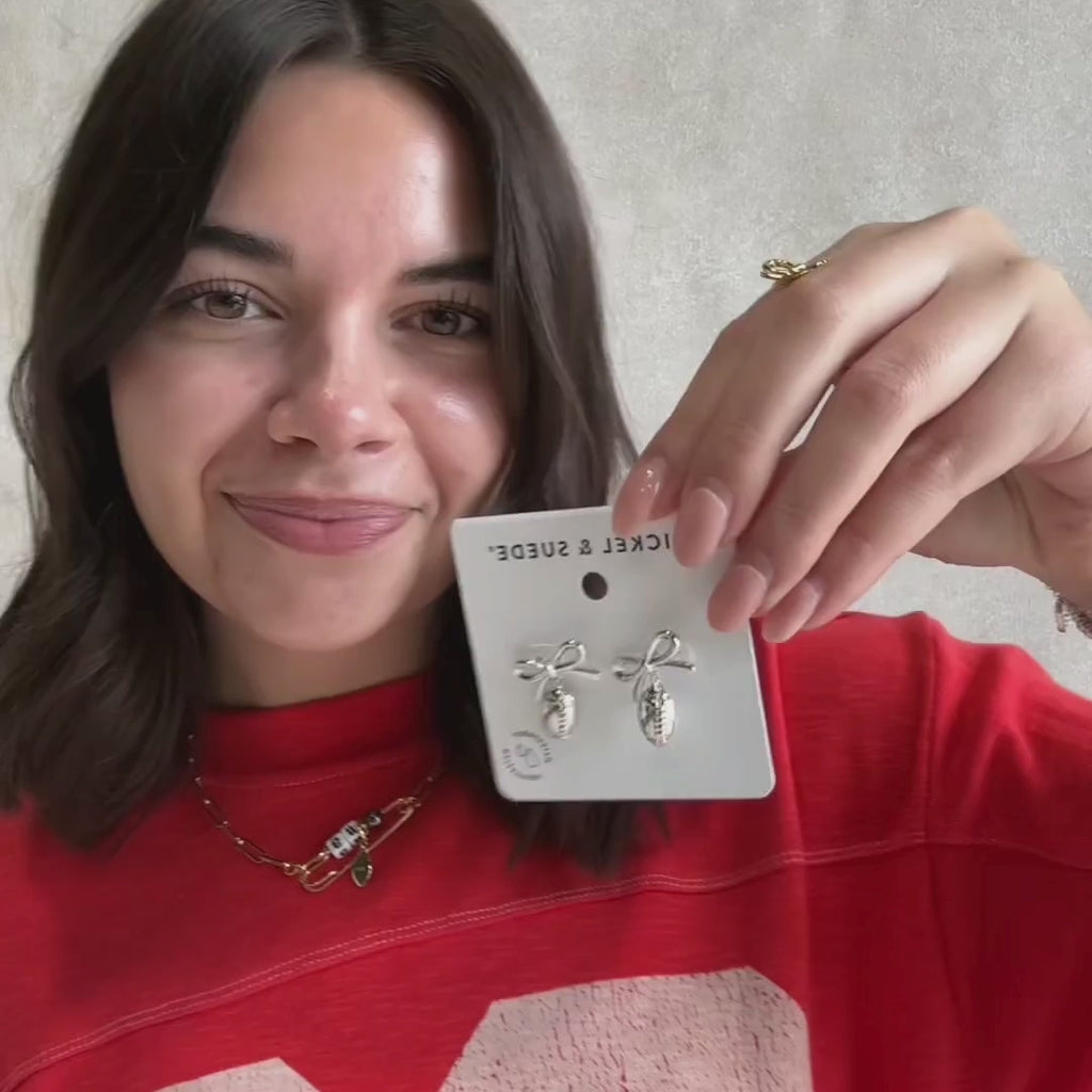 A subtle way to show your gameday spirit! The Football & Bow Drop Studs are available in your choice of gold or silver.