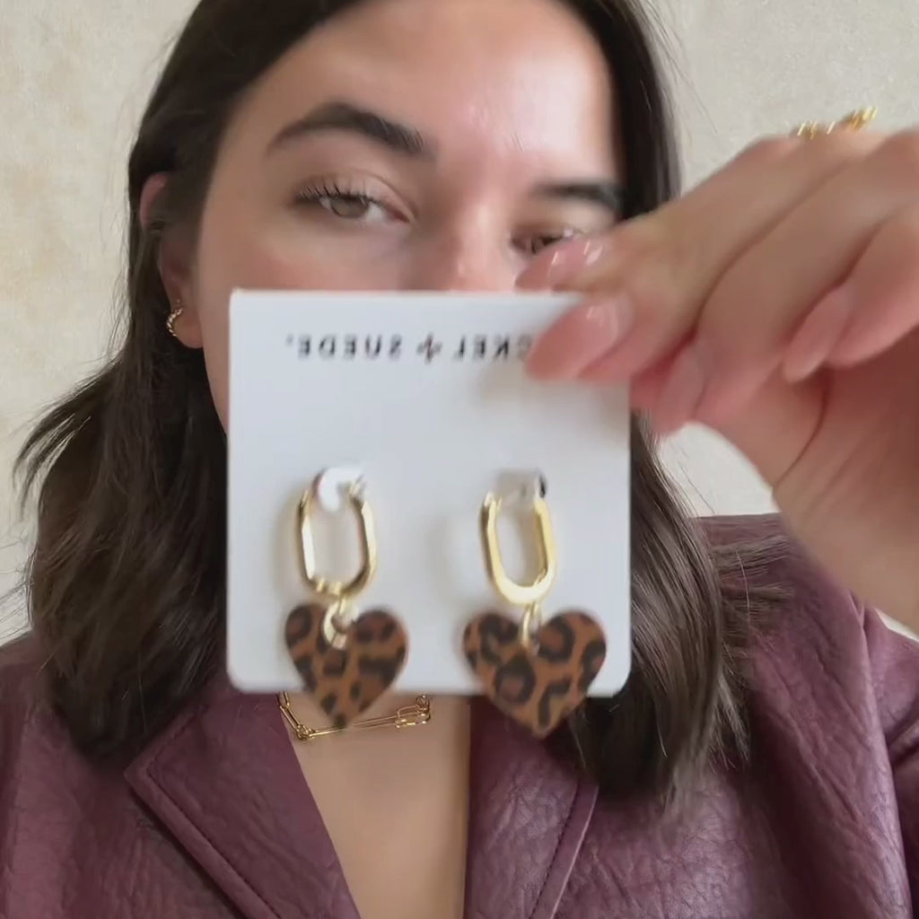 Make a subtle statement with the Spotted Leopard Quinn, featuring a lightweight leather heart on a huggie earring.