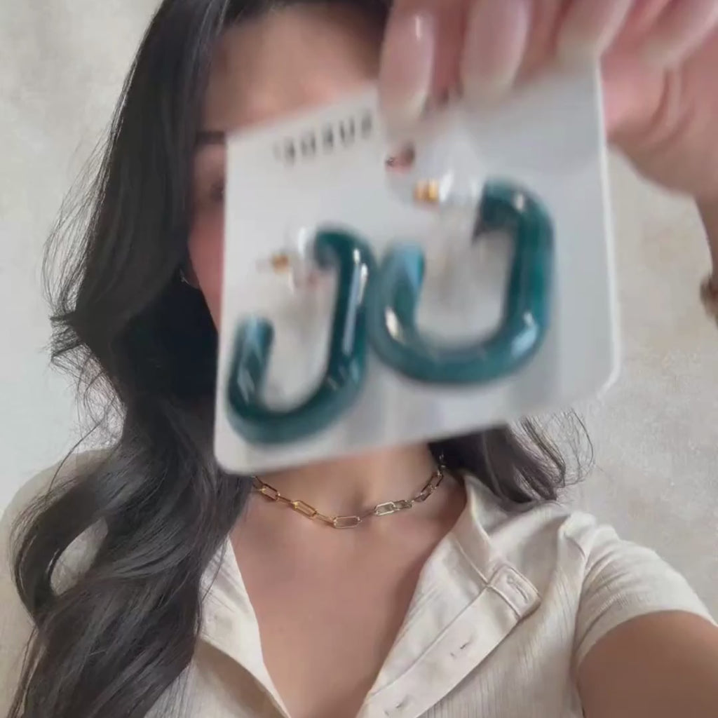 Make a bold impression in this artful teal hoop. With a modern U-shaped design, these lightweight earrings are comfortable for everyday wear.