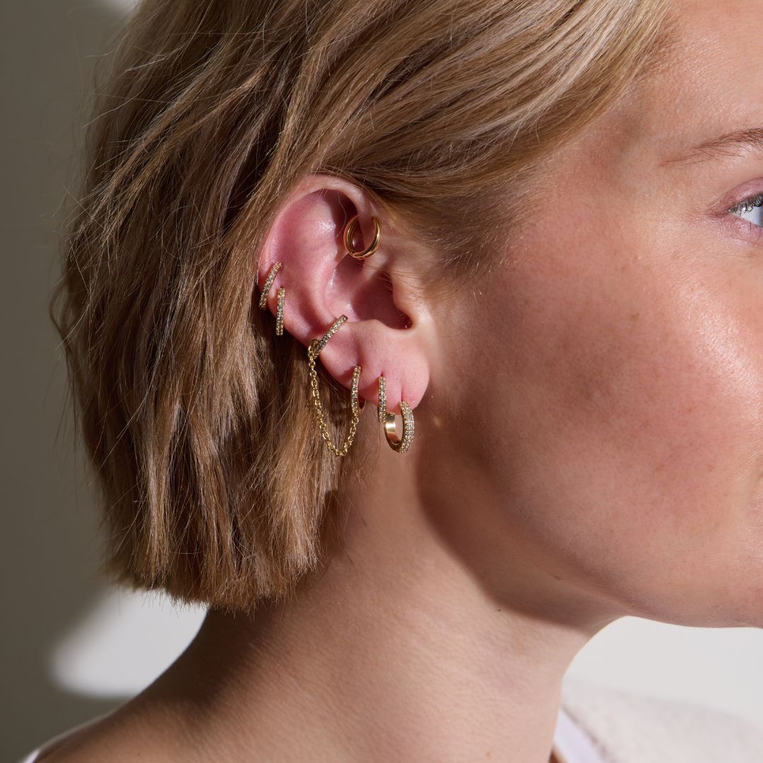 Safety Pin Necklace, Pearl Chain Huggie with Cuff & Thea Chain Huggies