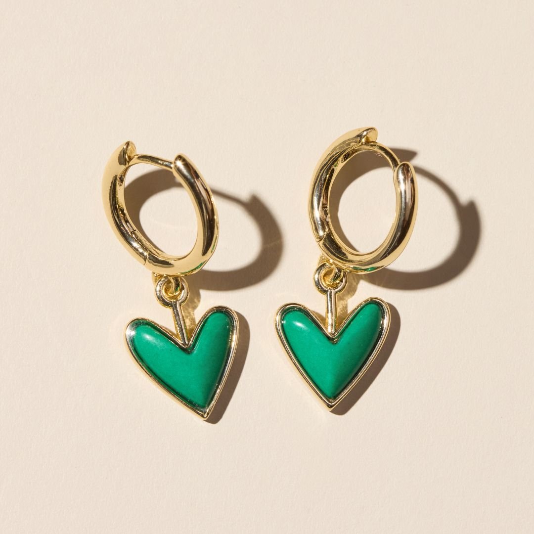 On-trend sweetheart studs are ideal for mixing and stacking. Inspired by their namesake statement earring, these petite studs feature a green stone in the shape of a heart.