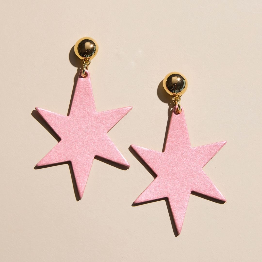 The Bubblegum Astrid features a star shape earring crafted from premium Italian leather, finished with a polished gold or silver post stud—giving you a bold look and lightweight feel.