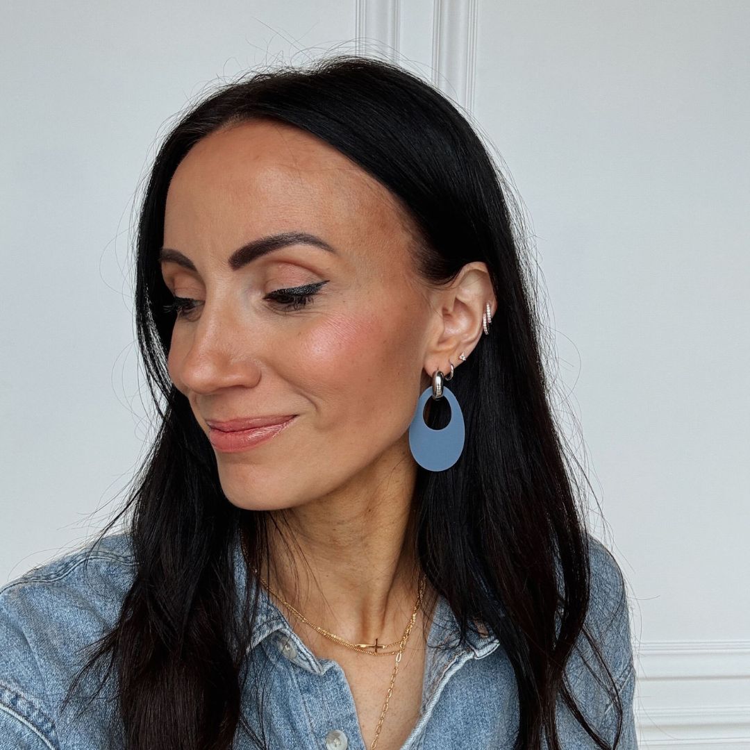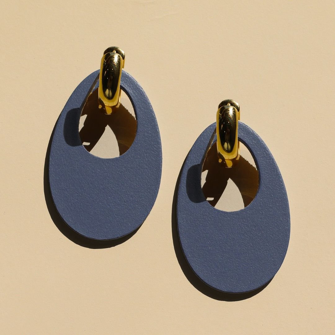A new take on the classic statement earring. Featuring an oval drop with a subtle cut-out center, it creates a modern, sculptural look that feels both bold and effortlessly refined. Finished with a polished gold or silver huggie.