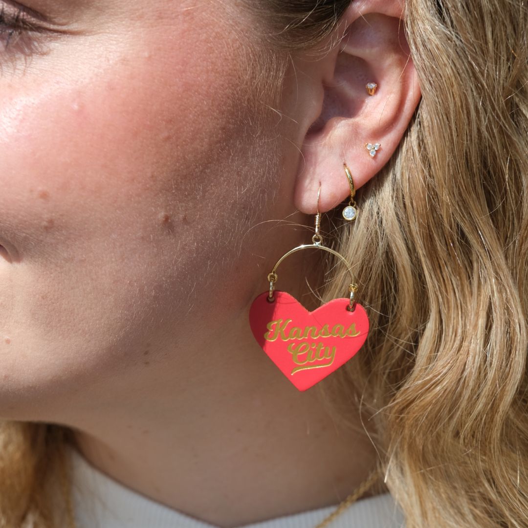 Rep your Kansas City pride with the Crimson KC Lover. These earrings are crafted and hand-embossed in Kansas City from premium Italian leather for a standout look.