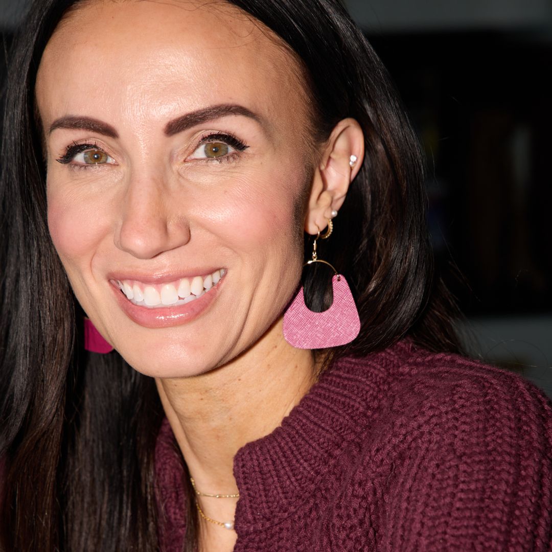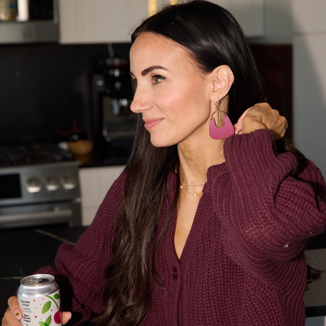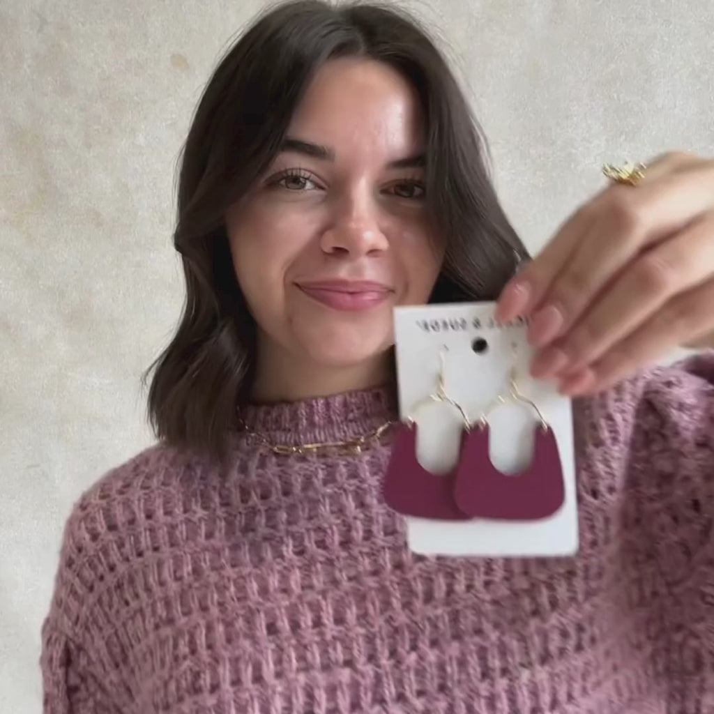 These earrings feature Dark Cherry leather in our favorite Nora shape. These lightweight, statement earrings are perfect for any seasonal outfit.