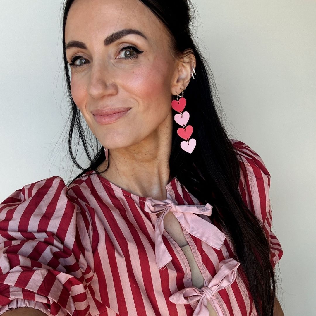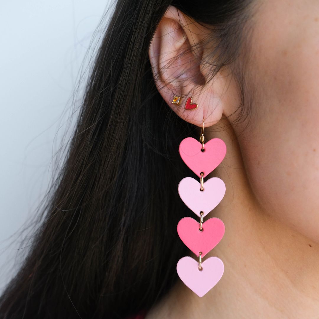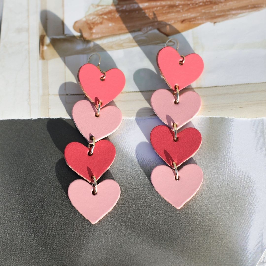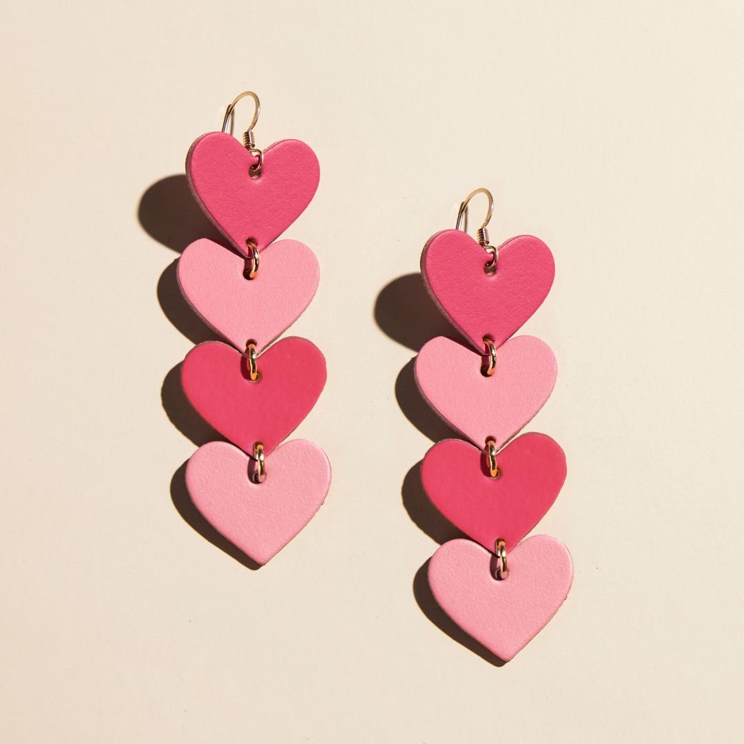 Make a statement of love and style with the Pink Pepper Ashton earrings. Featuring a tiered heart dangle earring and crafted with premium lightweight Hawthorne Rose, and Cameo leathers. Promising to elevate any outfit with its unique blend of romantic charm.