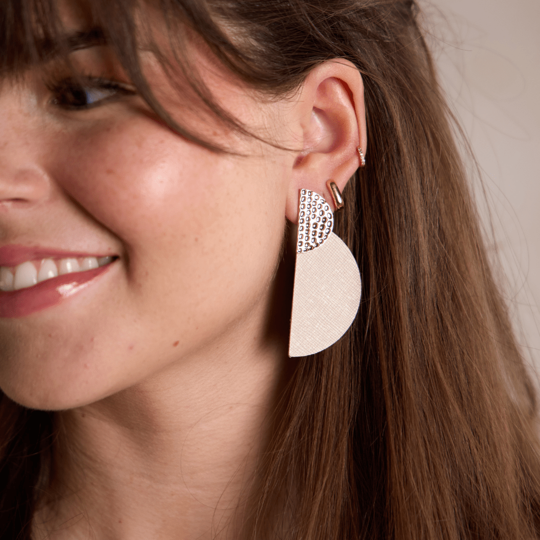 The Vanilla Shimmer Demi blends classic elegance with a fresh, modern feel. Its soft, creamy hue and subtle shimmer add just the right touch to elevate any look. Crafted from lightweight leather.