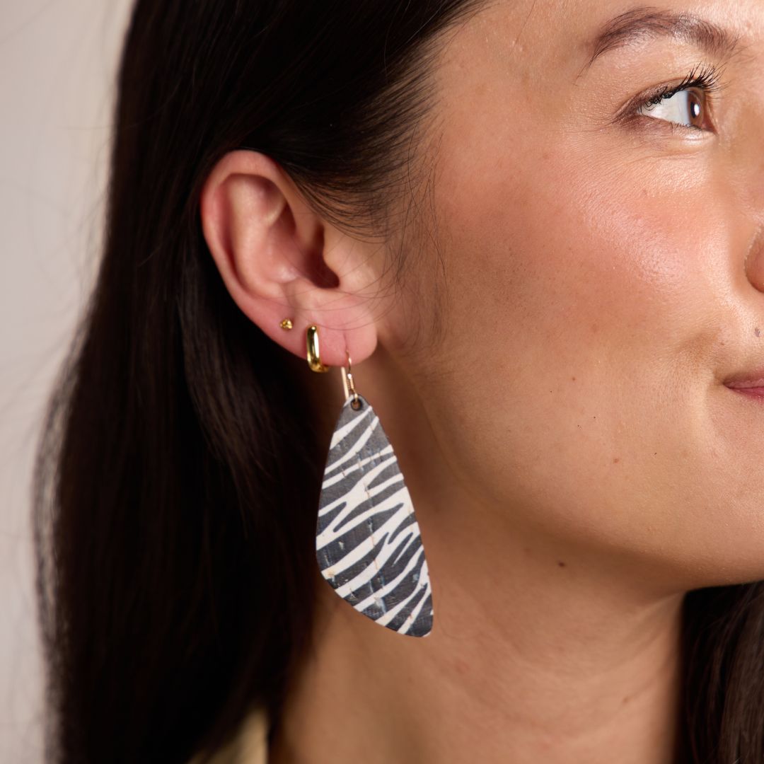 Make a subtle statement with the Zebra Cork Evie. These leather earrings are made with our premium Zebra Cork, making for a fun lightweight feel.