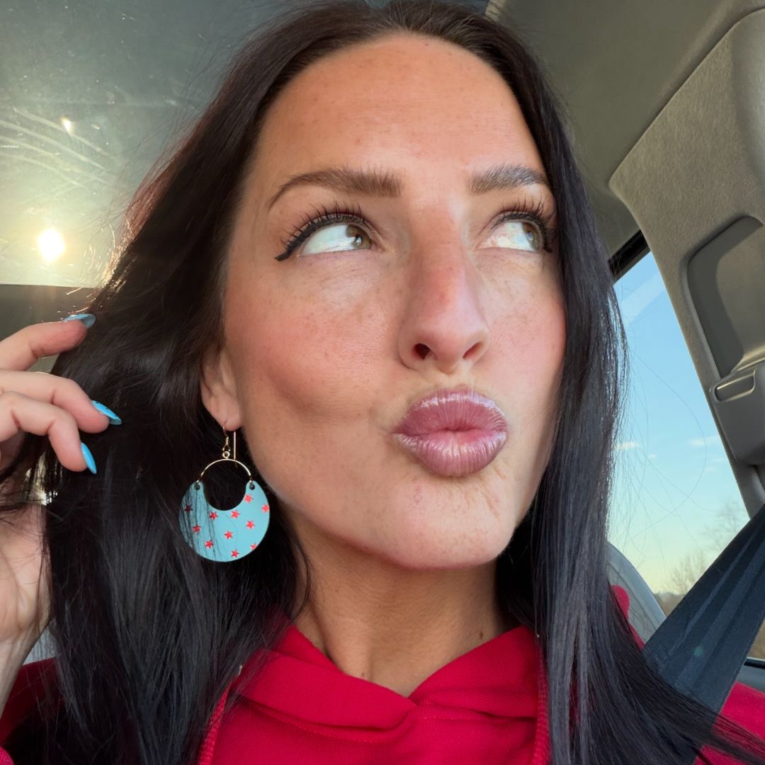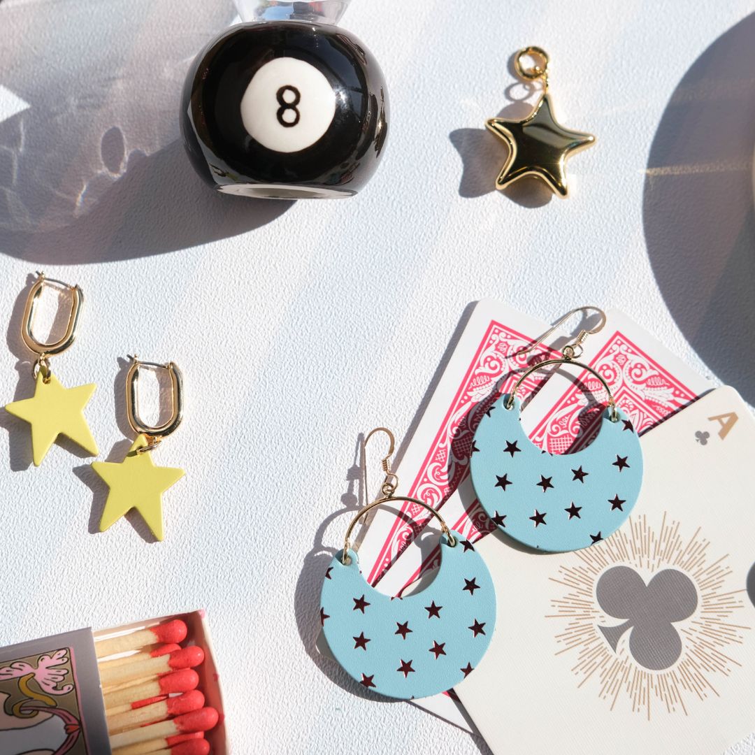 Celebrate in lucky style with these festive statement earrings. Handcrafted from our premium lagoon leather, the Lagoon Star Ninas feature a hand-stamped foil star pattern that adds just the right touch of sparkle.