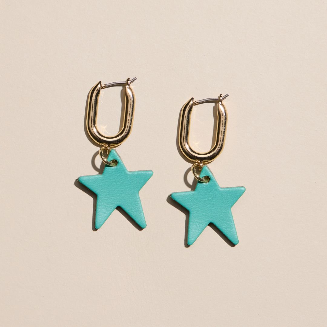 The Tate features a lightweight leather star on a huggie earring. The perfect wearable statement for everyday.