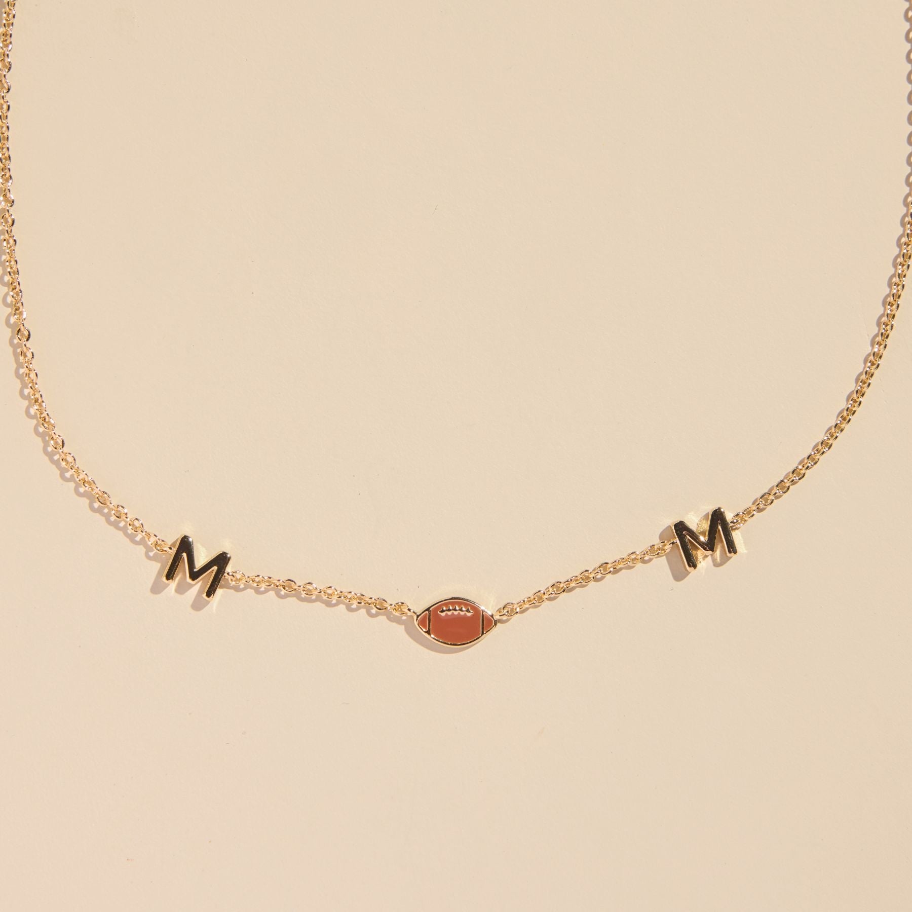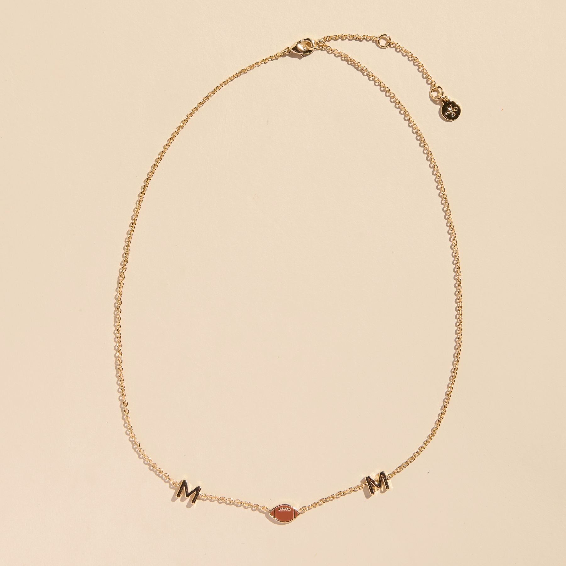 Show your 'Football Mom' pride or give a gift she'll treasure on game days and year-round. The Football Mom Necklace features a simple 14k gold plated chain accented with an enamel football.