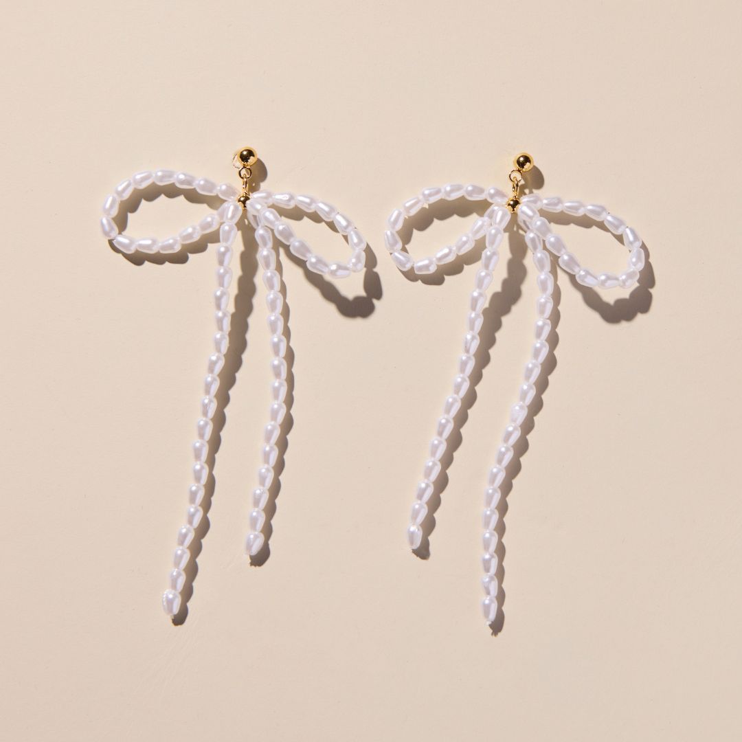 Pearl Bow Drop Earrings