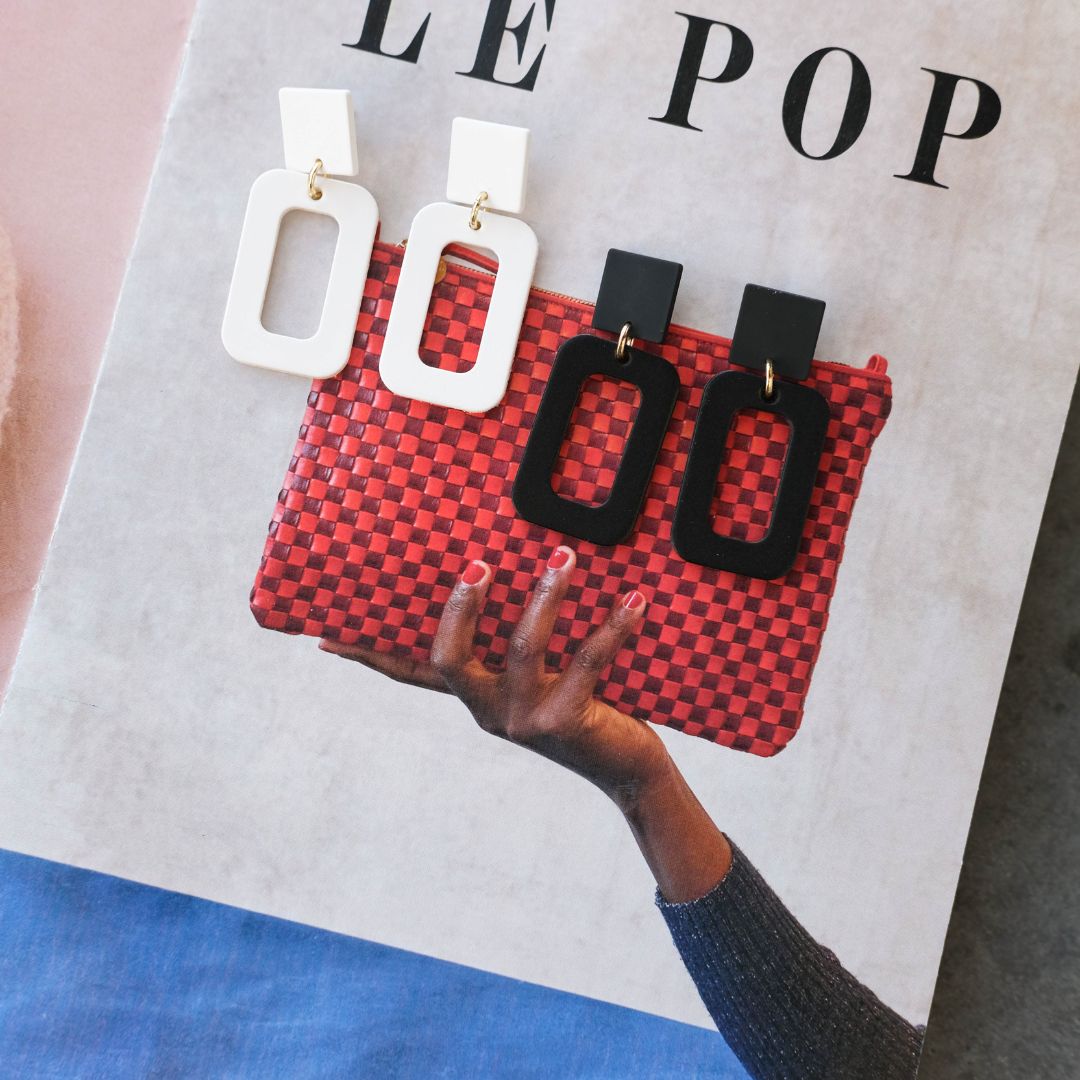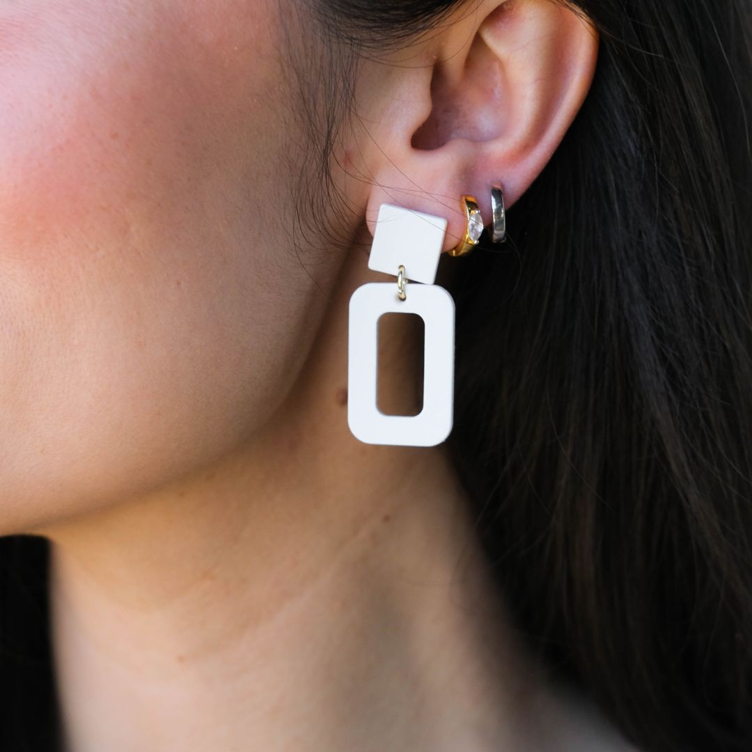Make a modern statement with the Logan, featuring a soft rectangular leather drop paired with a sleek stud. These earrings bring effortless sophistication to any look. Lightweight and versatile for everyday wear or an elevated night out.