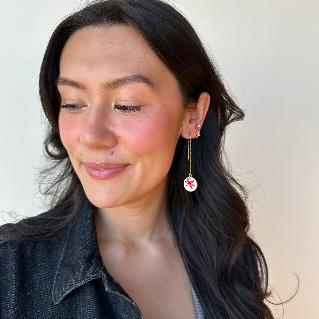 Elevate your game day look with our Ohio State Buckeye Sticker Threader Earrings, celebrating your favorite team.