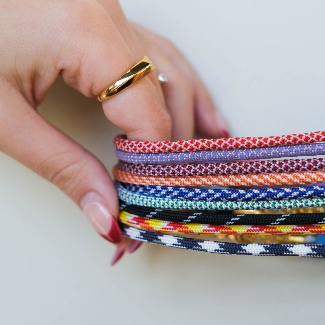Add a fun touch to your look with our minimalist cord necklace. Handcrafted from nylon paracord rope and finished with gold or silver-plated accents. Add a charm for a perfect edition to any necklace stack or everyday wear.