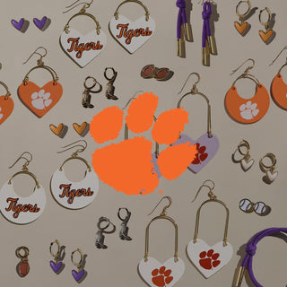 Discover a stunning array of handcrafted leather earrings, thoughtfully curated to match an array of university team colors. From vibrant crimson and deep blue to striking gold and evergreen, our earrings encapsulate the essence of sportsmanship and camaraderie. Whether you're cheering on the sidelines or relishing in victory, these earrings are the ultimate accessory to complete your game-day ensemble.