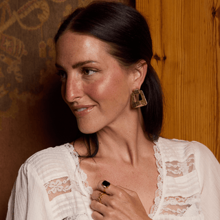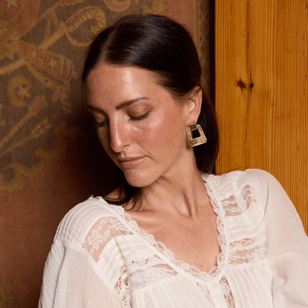 Timeless style meets a modern silhouette with the Avery earrings. This lightweight statement earring is created with our premium firm Vintage Gold leather and a beveled silver stud component.