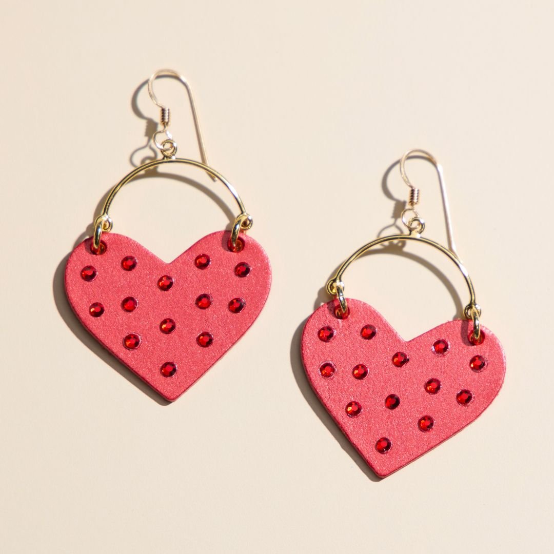 Make a statement with the Jeweled Harlow earrings. They feature a classic heart shape and are crafted with rhinestones applied individually by hand.