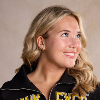 Elevate your game day look with our University of Iowa Tigerhawk Huggies. These enamel huggie hoop earrings give a subtle nod to your team spirit.