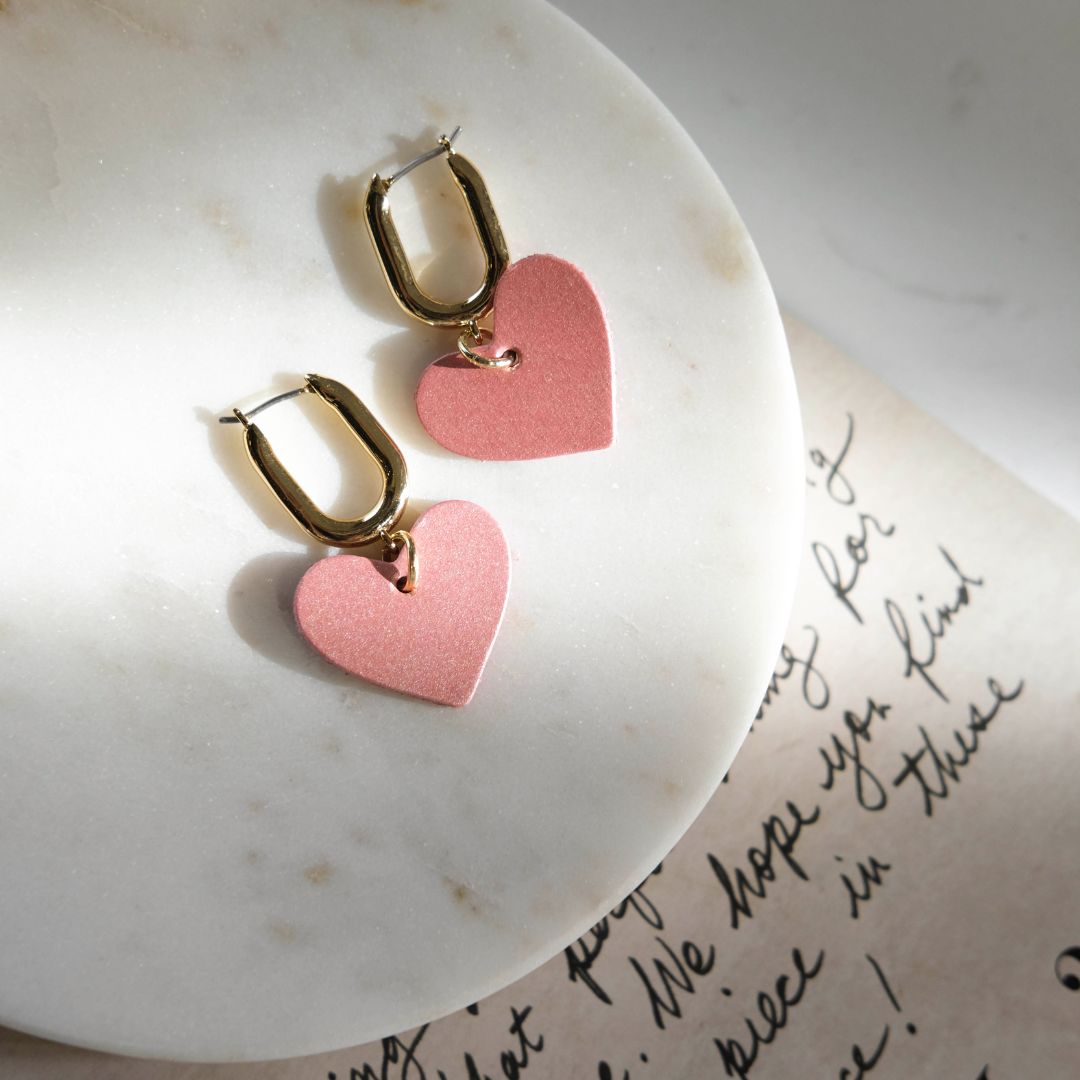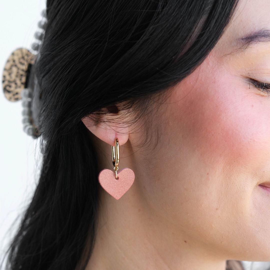 Make a subtle statement with the Pale Blush Pearl Quinn, featuring a lightweight leather heart on a huggie earring.