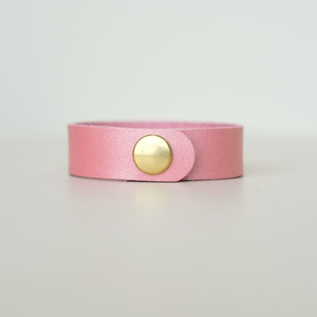 Stack your wrist with this thin full grain leather cuff bracelet. This cuff is 5/8" inch wide, available in four wrist sizes, and is complimented by brass or silver snaps. Stack it with other bracelets for a styled statement look.