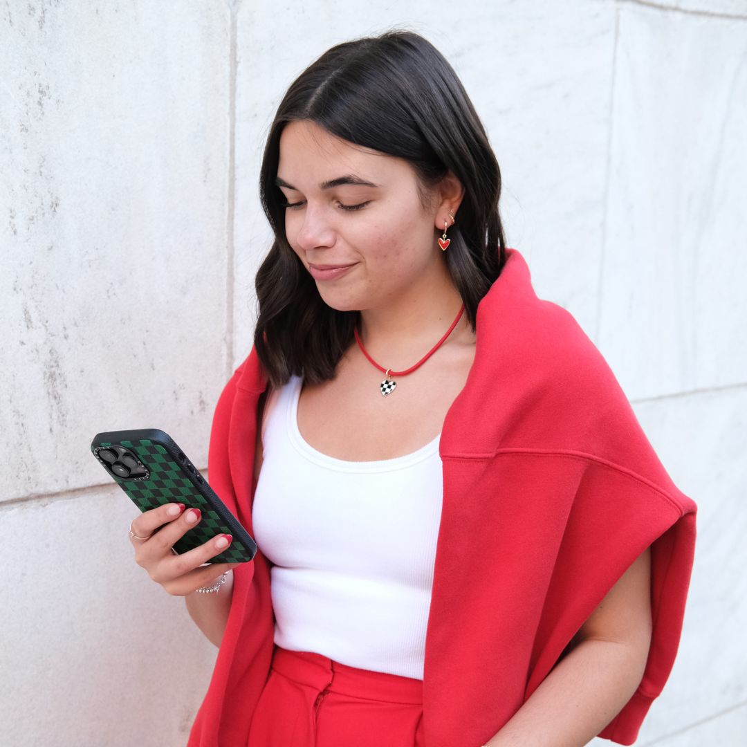 On-trend huggie hoops are ideal for mixing and stacking. Inspired by their namesake statement earring, these petite hoops feature a hanging red coral stone heart in gold plating over brass with a hinged closure.