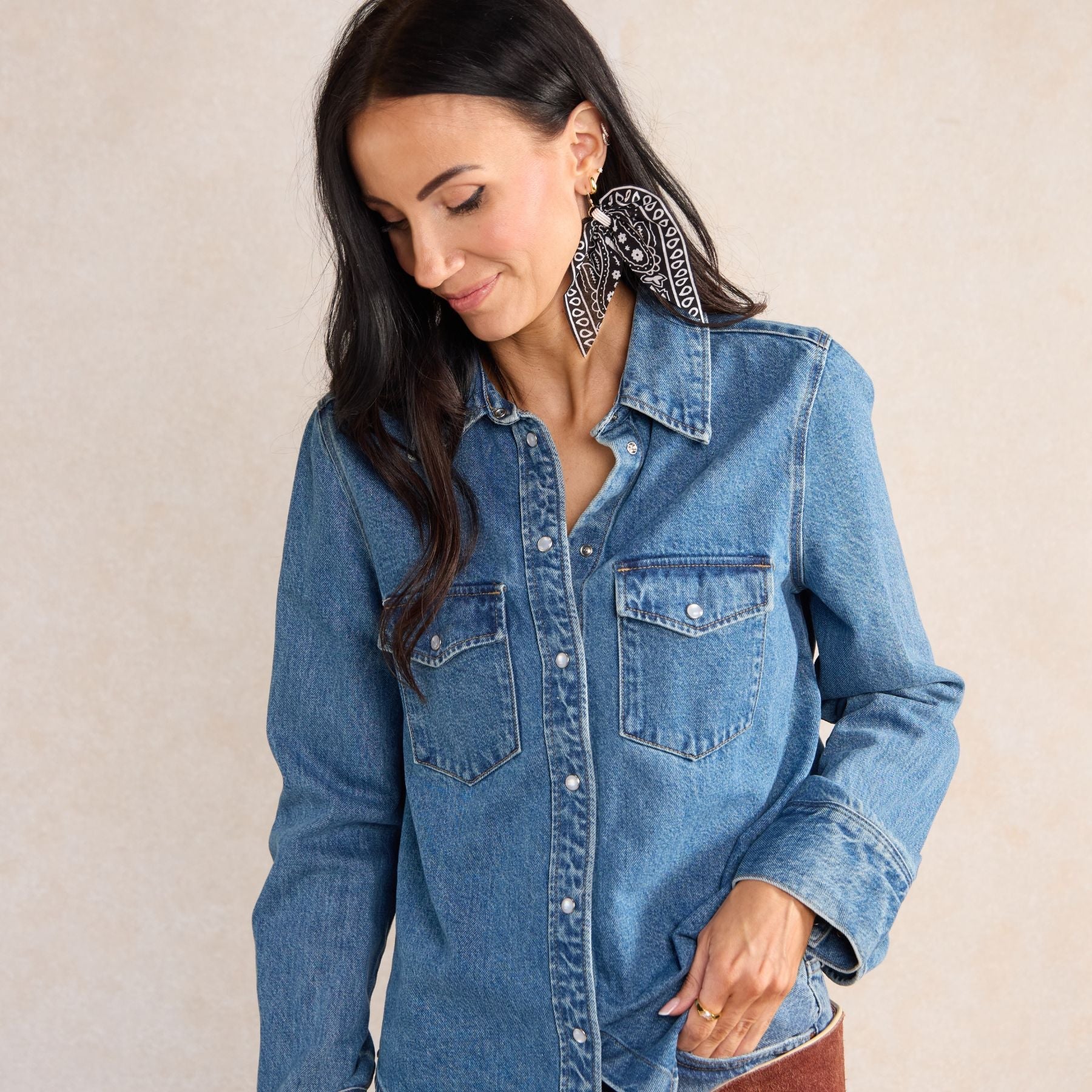 Add a western accent to your look with these bandana earrings, crafted with soft bandana fabric and finished with an enamel clamp component for a bold yet lightweight statement. Rodeo-ready, and easy to wear.