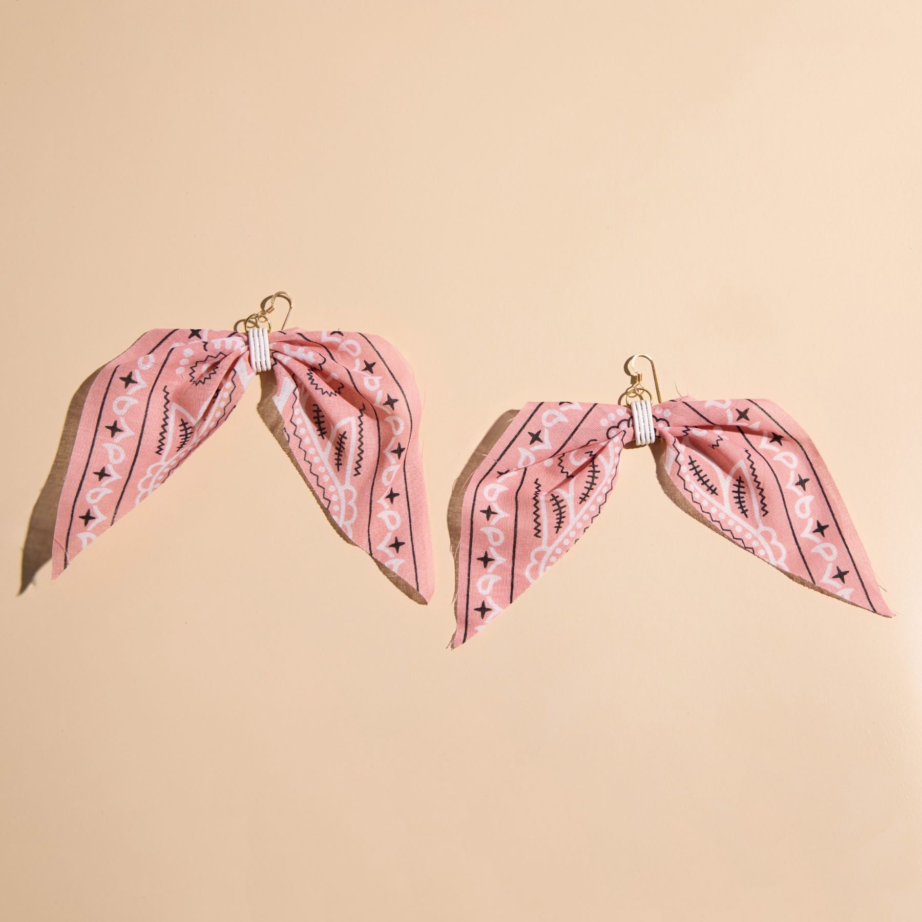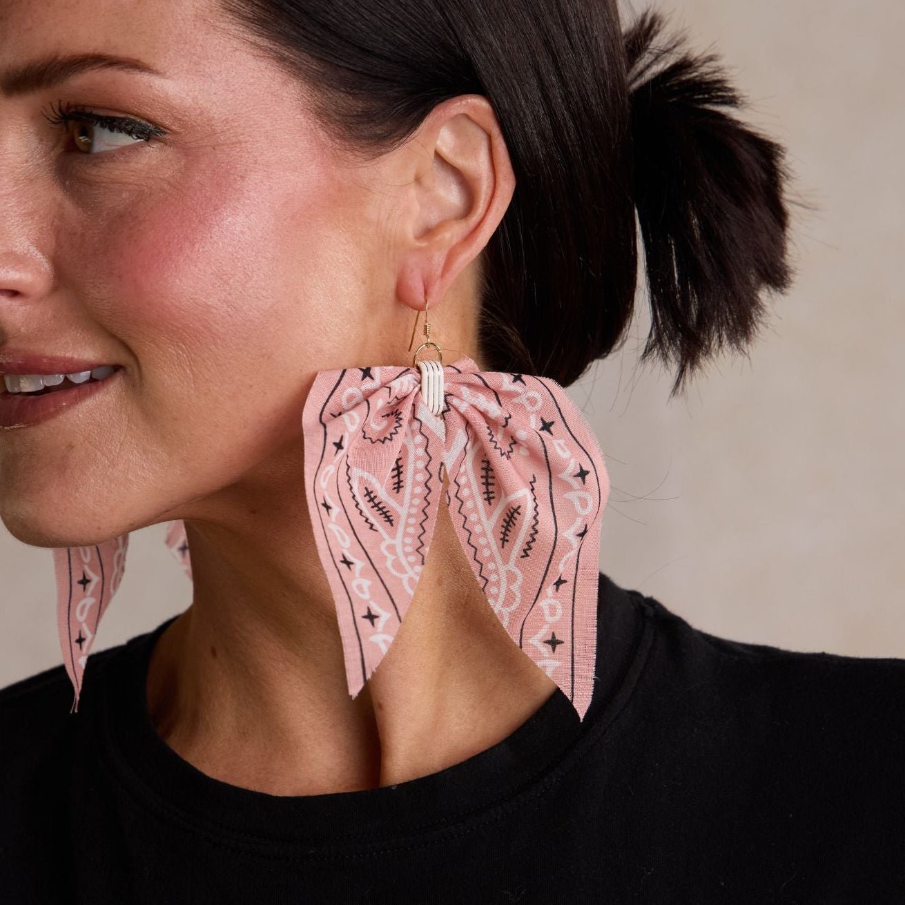 Add a western accent to your look with these bandana earrings, crafted with soft bandana fabric and finished with an enamel clamp component for a bold yet lightweight statement. Rodeo-ready, and easy to wear.