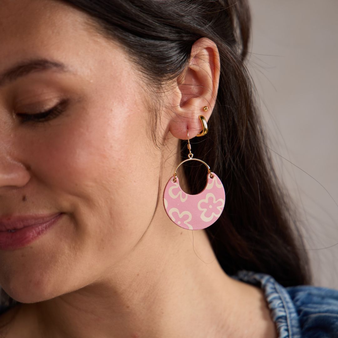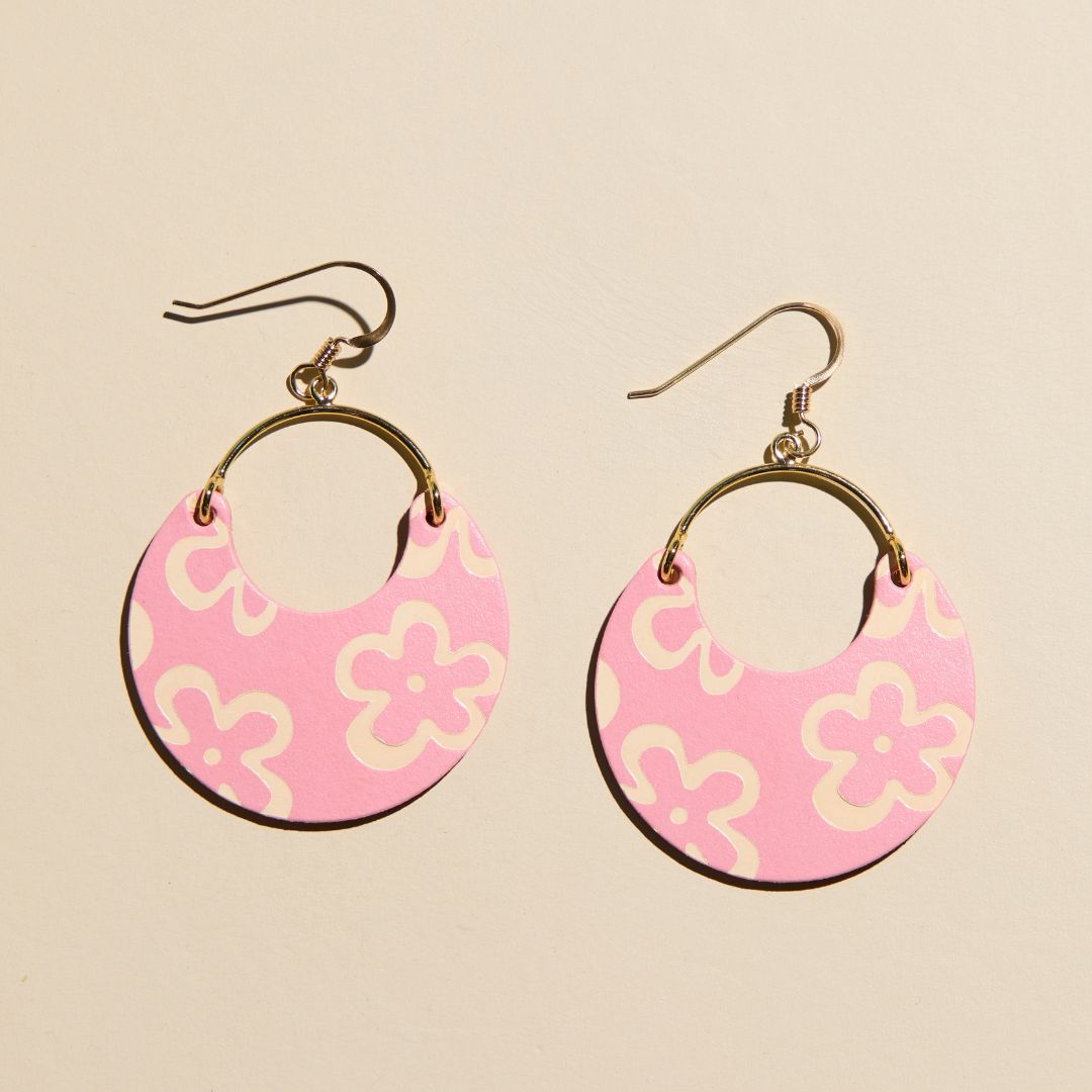 Make a fun floral statement with the Cameo Bloomscape Ninas. Smooth pink leather with a hand stamped floral pattern, perfect for an everyday statement.