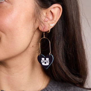 Elevate your game day look with our Aggie Blue Utah State University Heartthrob earrings. A cute and chic game day earring that's perfect for showing off your team spirit in style.