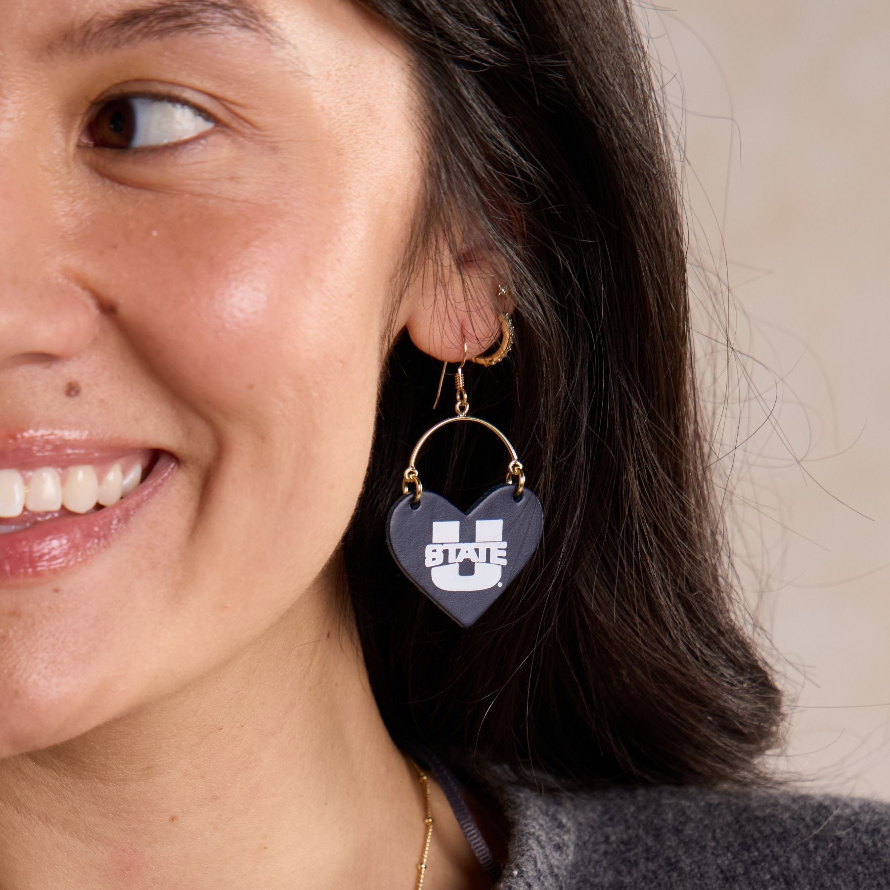 Elevate your gameday look with our Utah State University Lover leather earrings - the perfect accessory for passionate fans, proud alumni, and stylish students. These officially licensed earrings are crafted and hand-embossed in Kansas City from premium Italian leather for a standout look.