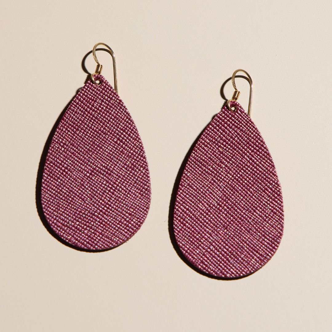 Timeless style meets a modern silhouette with the Berry Glaze Teardrops. This lightweight statement earring is created with our Merlot leather and has a frosted shimmery look.
