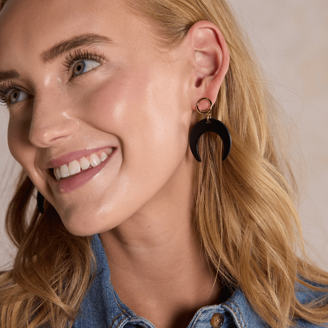 A unique boho-inspired earring, meet CeCe. Crafted with our lightweight Black leather, this statement earring is the perfect neutral addition to any look.
