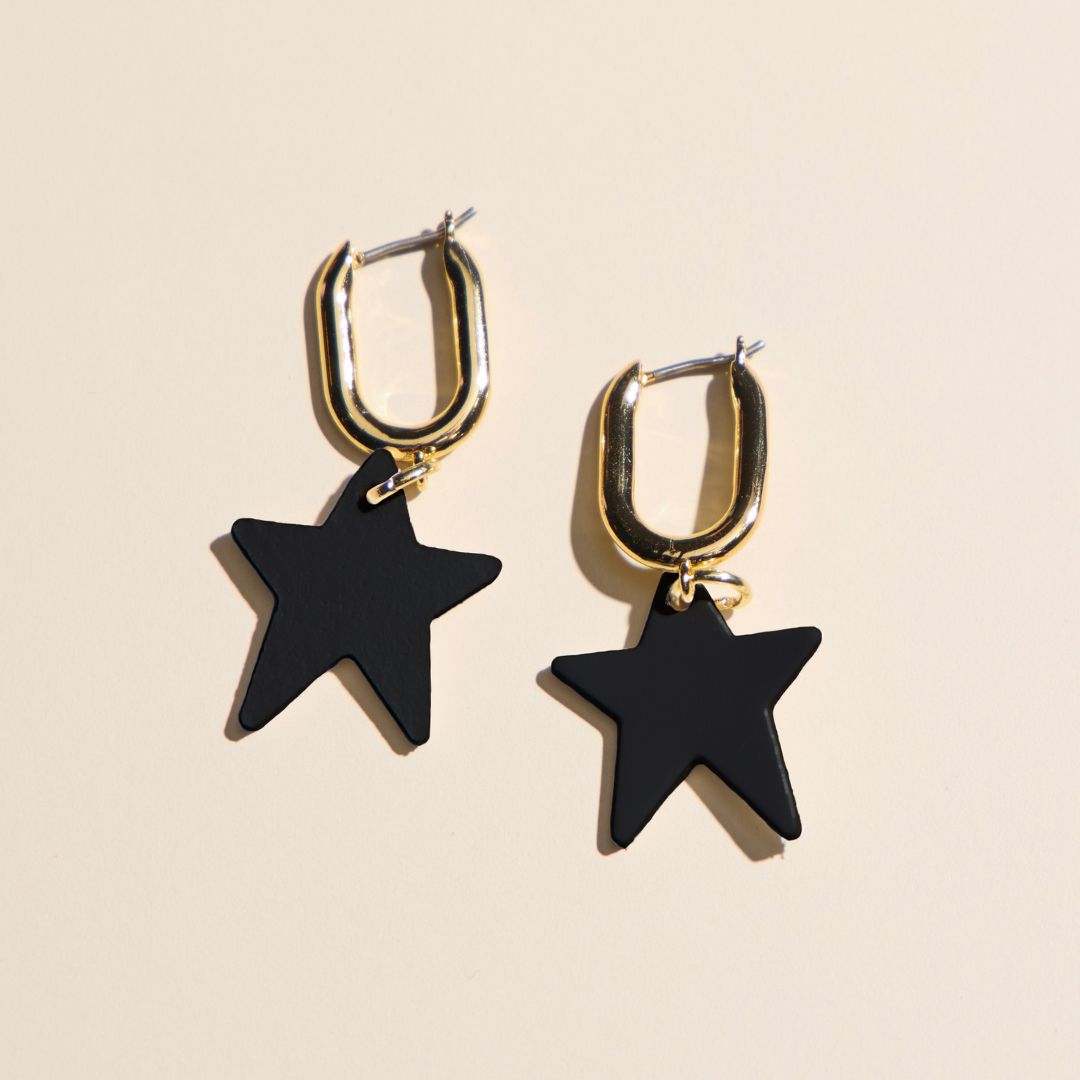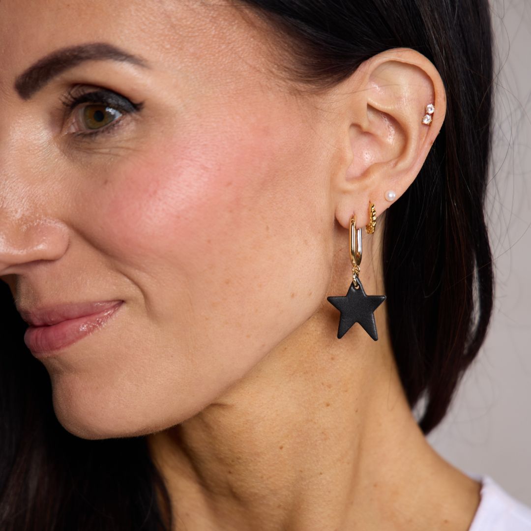 The Tate features a lightweight leather star on a huggie earring. The perfect wearable statement for everyday.