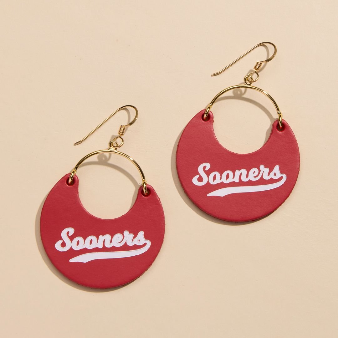Get ready for gameday with our University of Oklahoma Sooners Nina leather earrings. This spirited earring is officially licensed and perfect for showing off your team pride. Our earrings are crafted and hand-embossed in Kansas City from premium Italian leather for a standout look.