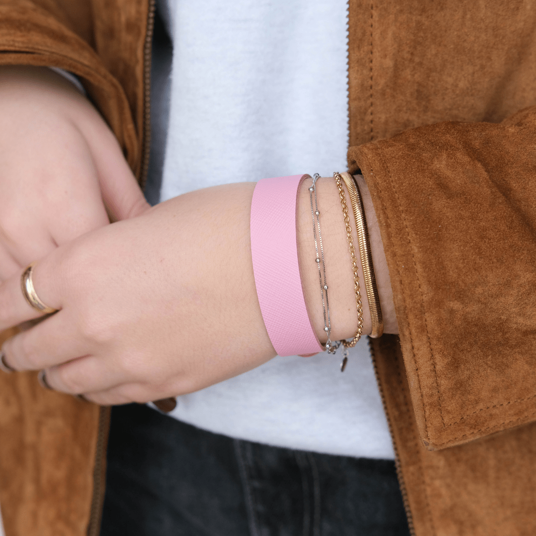 Stack your wrist with this thin full grain leather cuff bracelet. This cuff is 5/8" inch wide, available in four wrist sizes, and is complimented by brass or silver snaps. Stack it with other bracelets for a styled statement look.