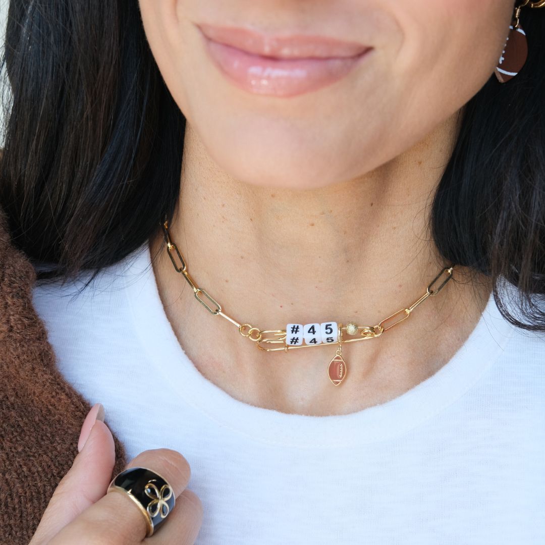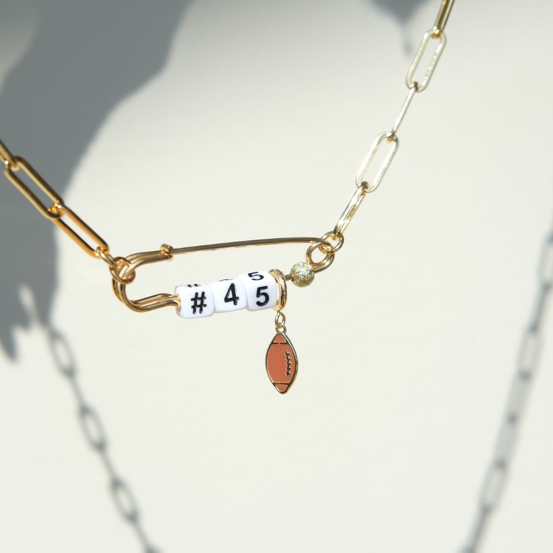 This Safety Pin Necklace is the perfect way to create an exquisite, unique piece of jewelry. Crafted with the option of gold or silver, this classic chain includes a large safety pin to be customized with alphabet or number beads to create a unique, irreplaceable piece that is truly yours.