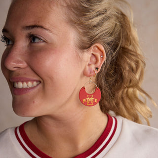 Elevate your game day look with our Cyclone Cardinal Iowa State University Ninas. A cute and chic game day earring that's perfect for showing off your team spirit in style. These cardinal and gold Nina earrings are perfect for showing off your Iowa State University pride!