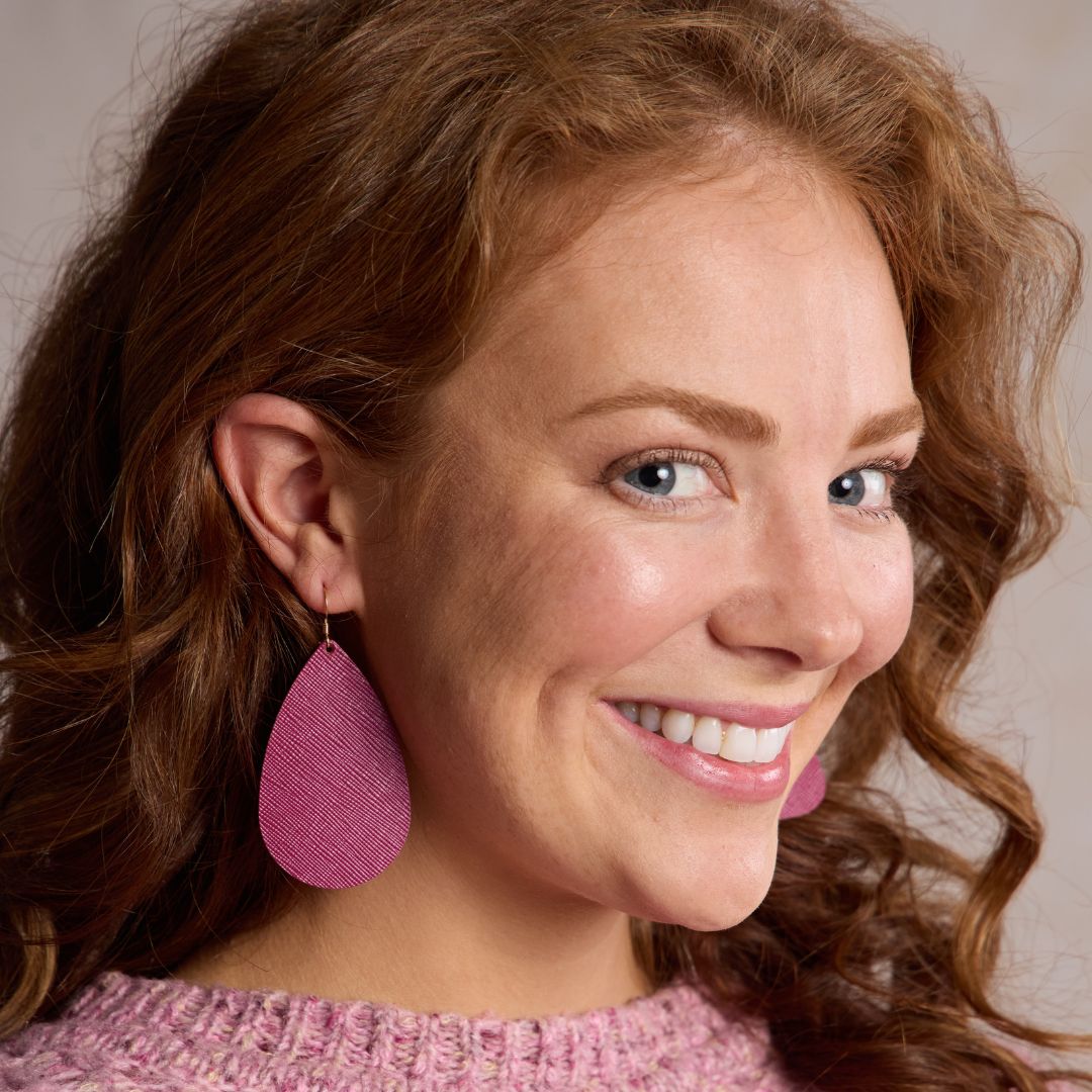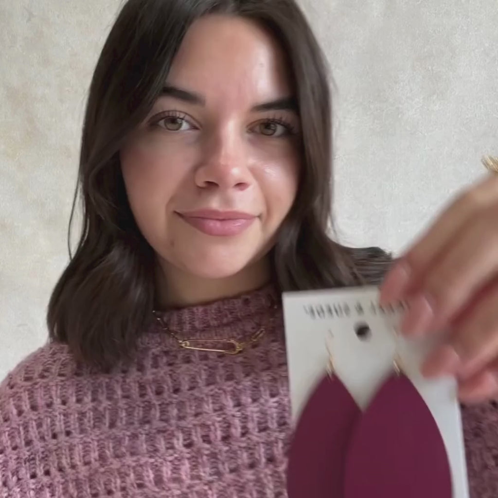 Timeless style meets a modern silhouette with the Dark Cherry Teardrops. This lightweight statement earring is created with our Dark Cherry leather.