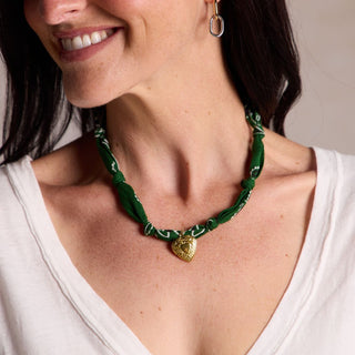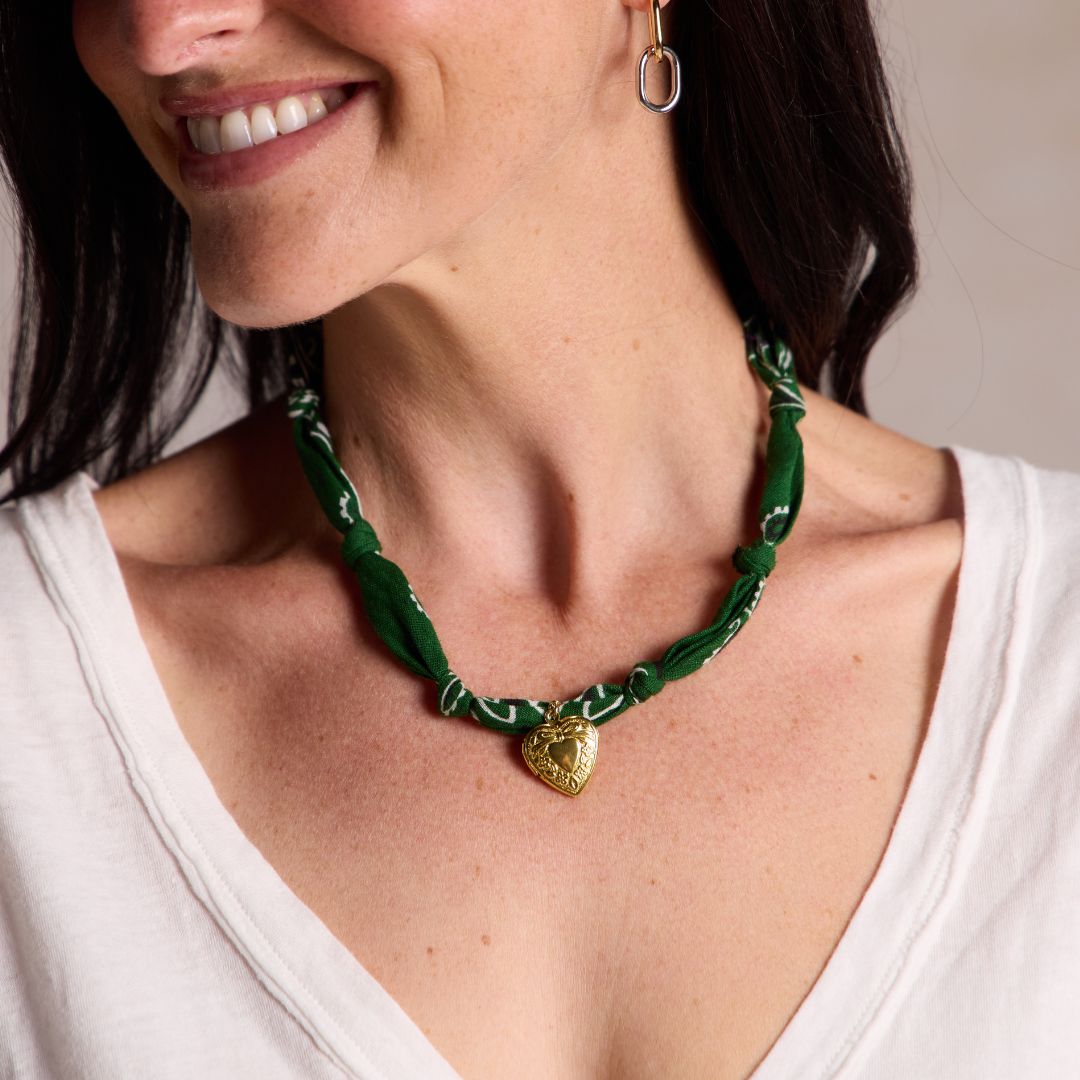 Add an eclectic accent to your look with this bandana charm necklace, featuring a soft tied bandana necklace and your choice of charm for a versatile, stackable statement.
