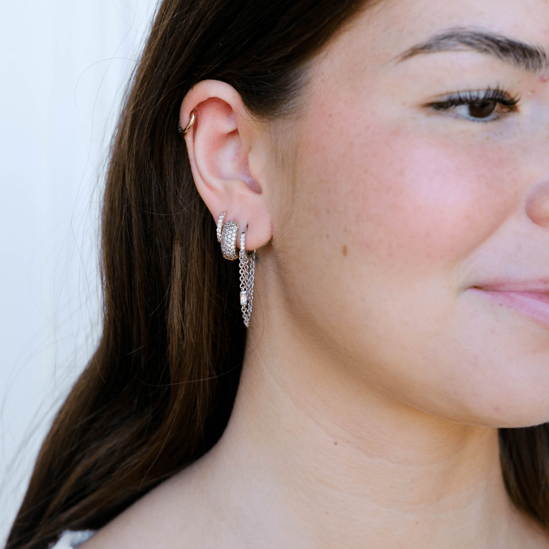 Pavé huggies are an essential piece in any jewelry collection. These domed huggies add a little luxury to the every day with layered cubic zirconia accents.