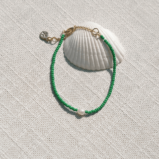 This beaded bracelet is ethically produced and threaded with tiny seed beads and centered with a natural cultured pearl. A lightweight, effortless accessory for your adventures. Wear separately or stack with other bracelets for a unique look.