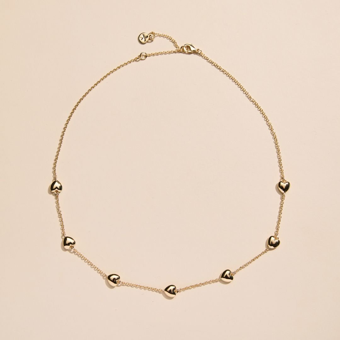 Dainty and minimalist, the Heart Delicate Saturn Chain Necklace is an interlinking station chain designed to delicately sit on your neckline. Upgrade your necklace stack with this 14k gold-plated staple, show off your favorite attachable charms, or wear it alone for a timeless touch.