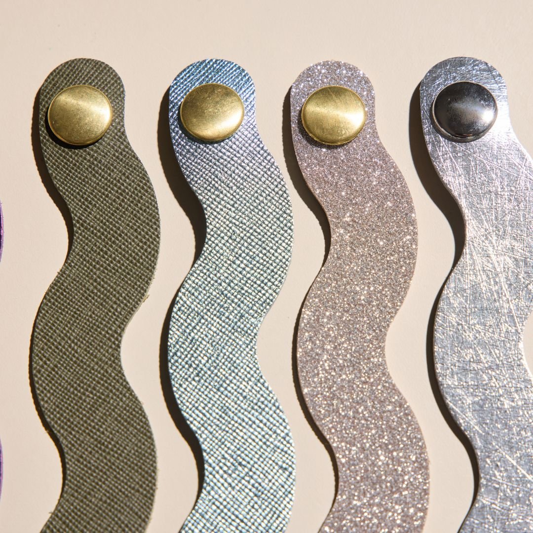 This squiggle-shaped leather cuff redefines the classic bracelet silhouette. Made from premium full-grain leather and secured with brass or silver snaps, its wavy form adds movement and personality to your wrist. Stack it with other bracelets for a styled statement look.