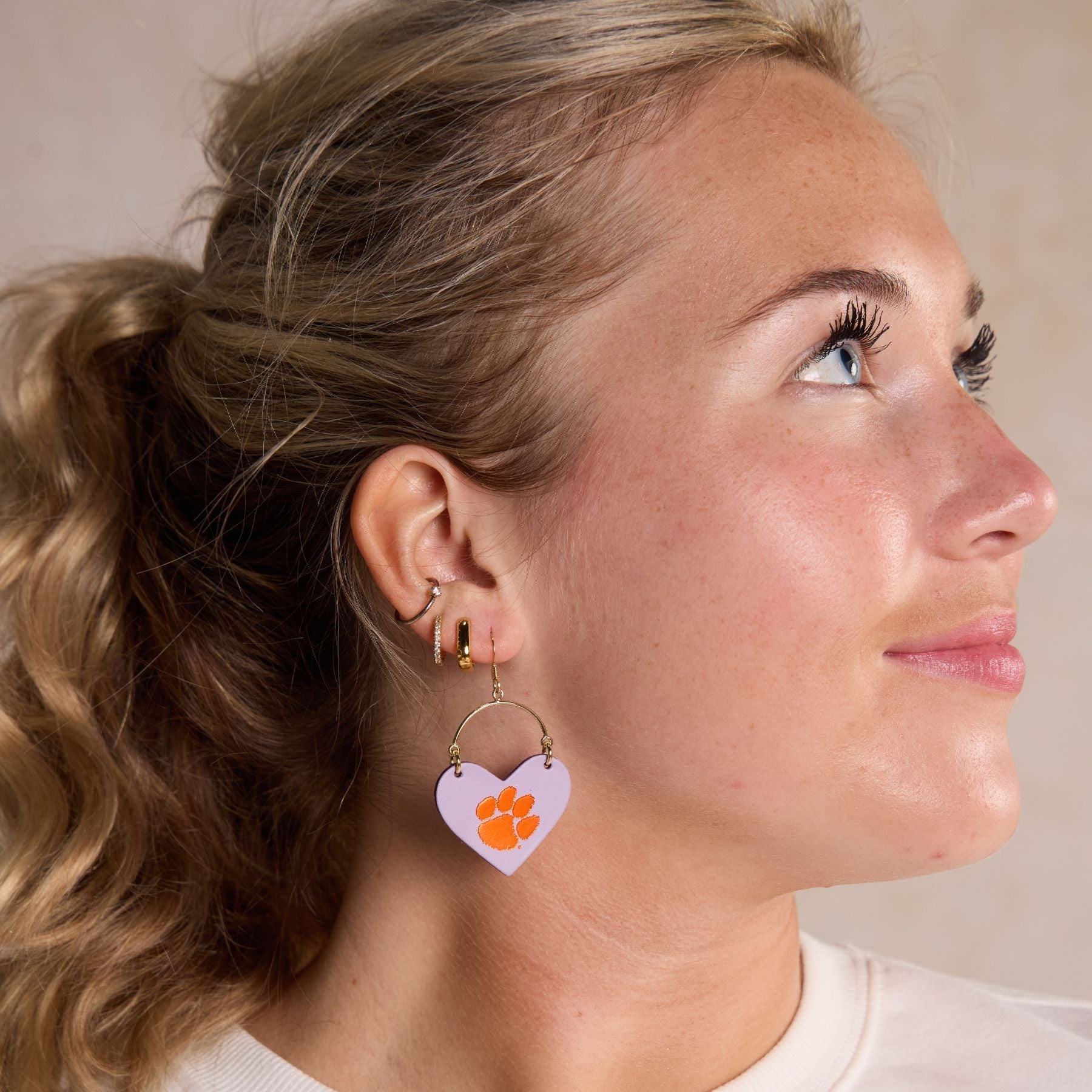 Elevate your gameday look with our Clemson University Paw Print Lover leather earrings - the perfect accessory for passionate fans, proud alumni, and stylish students. These officially licensed earrings are crafted and hand-embossed in Kansas City from premium Italian leather for a standout look.