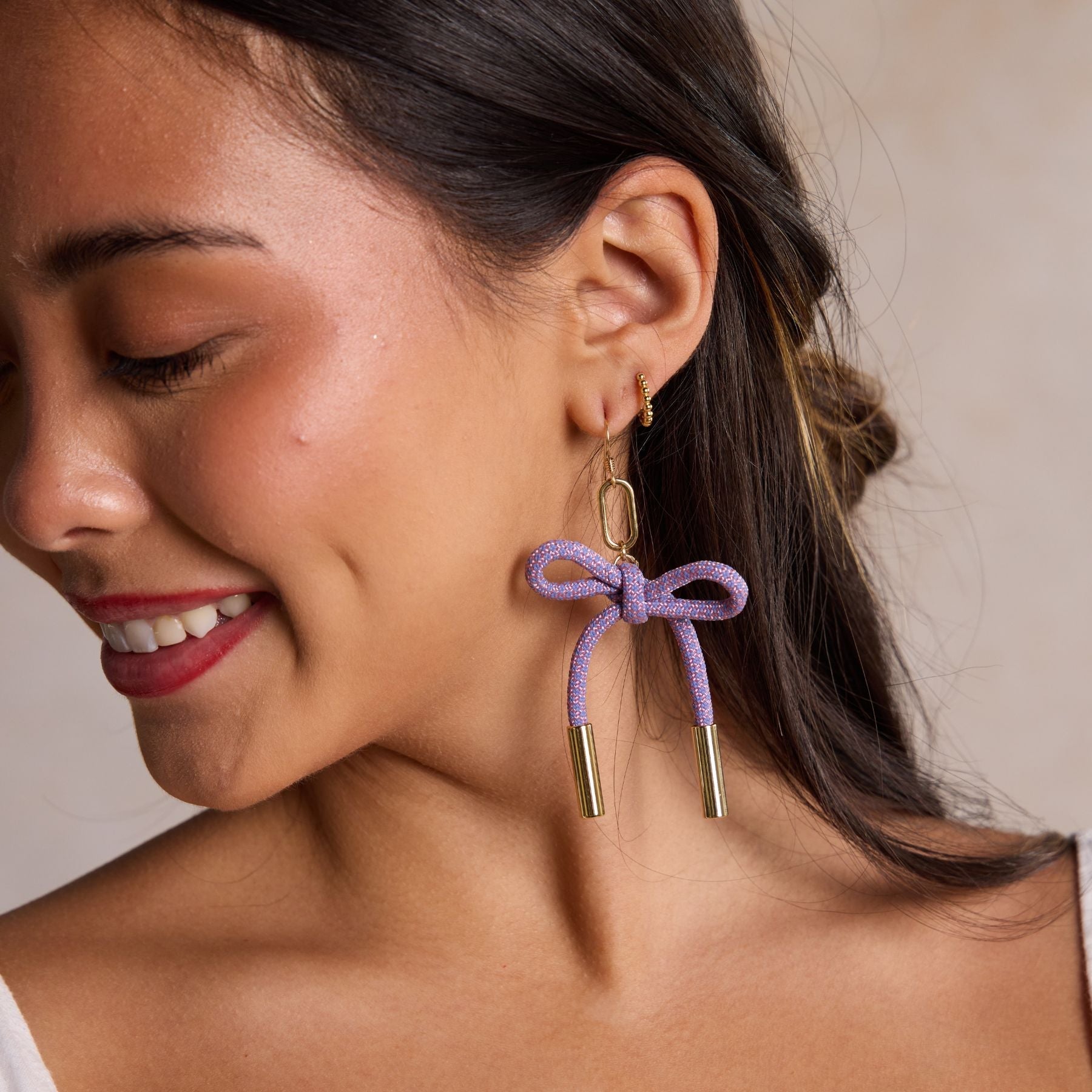 A new take on our best-selling cord earrings — meet the Simone in soft lavender. Crafted from lightweight nylon paracord and finished with your choice of 14k gold-filled or rhodium-plated sterling silver hooks, this statement earring adds a subtle yet stylish touch to any look. Perfect for weekend escapes, spring days, and everything in between.