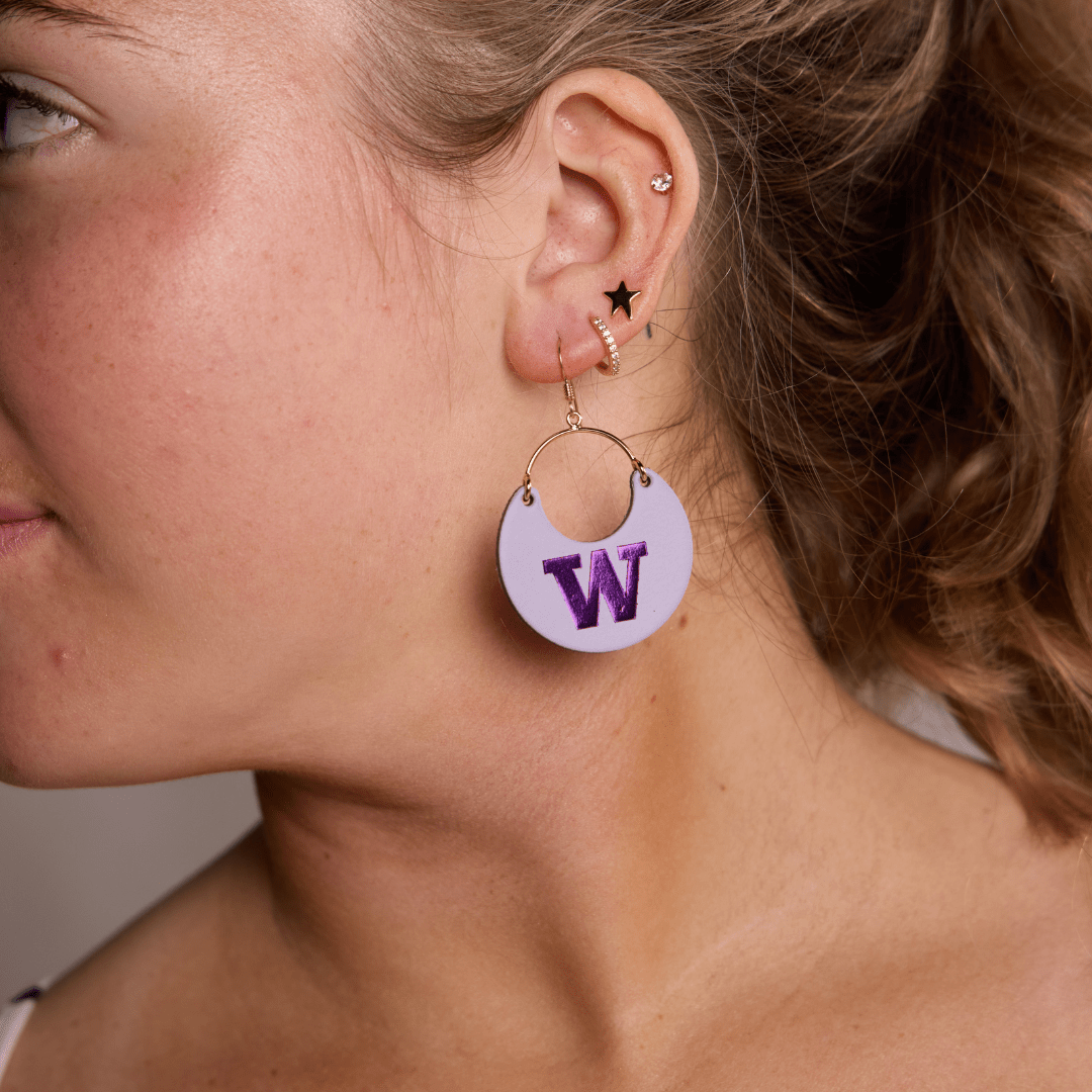 Get ready for gameday with our University of Washington Nina leather earrings. This spirited earring is officially licensed and perfect for showing off your team pride. Our earrings are crafted and hand-embossed in Kansas City from premium Italian leather for a standout look.