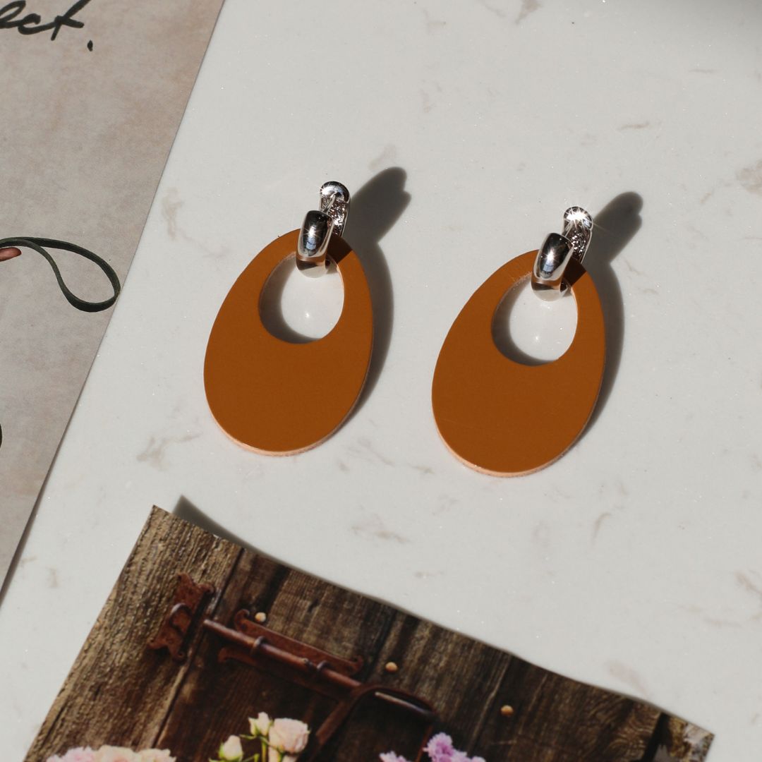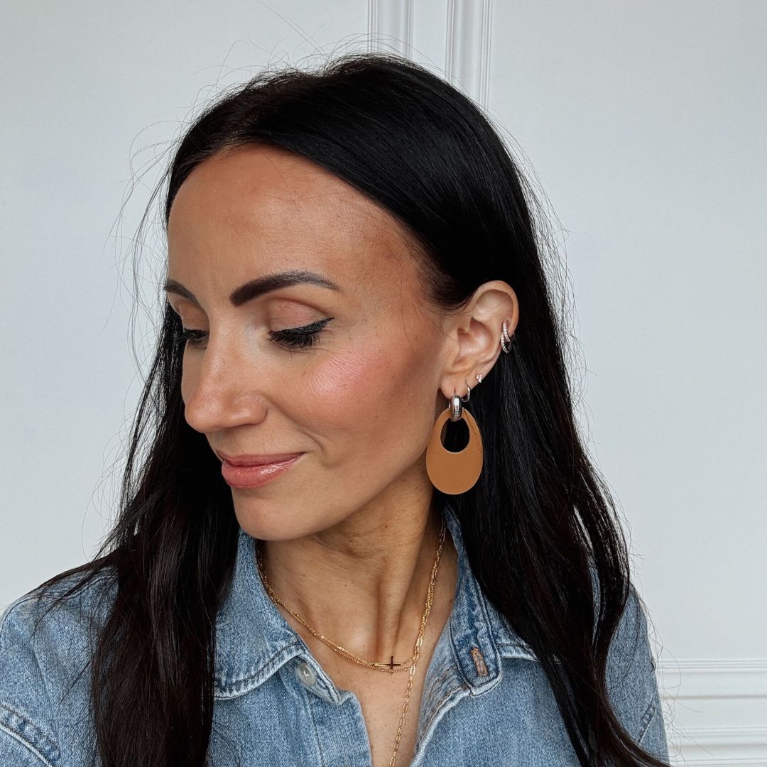 A new take on the classic statement earring. Featuring an oval drop with a subtle cut-out center, it creates a modern, sculptural look that feels both bold and effortlessly refined. Finished with a polished gold or silver huggie.