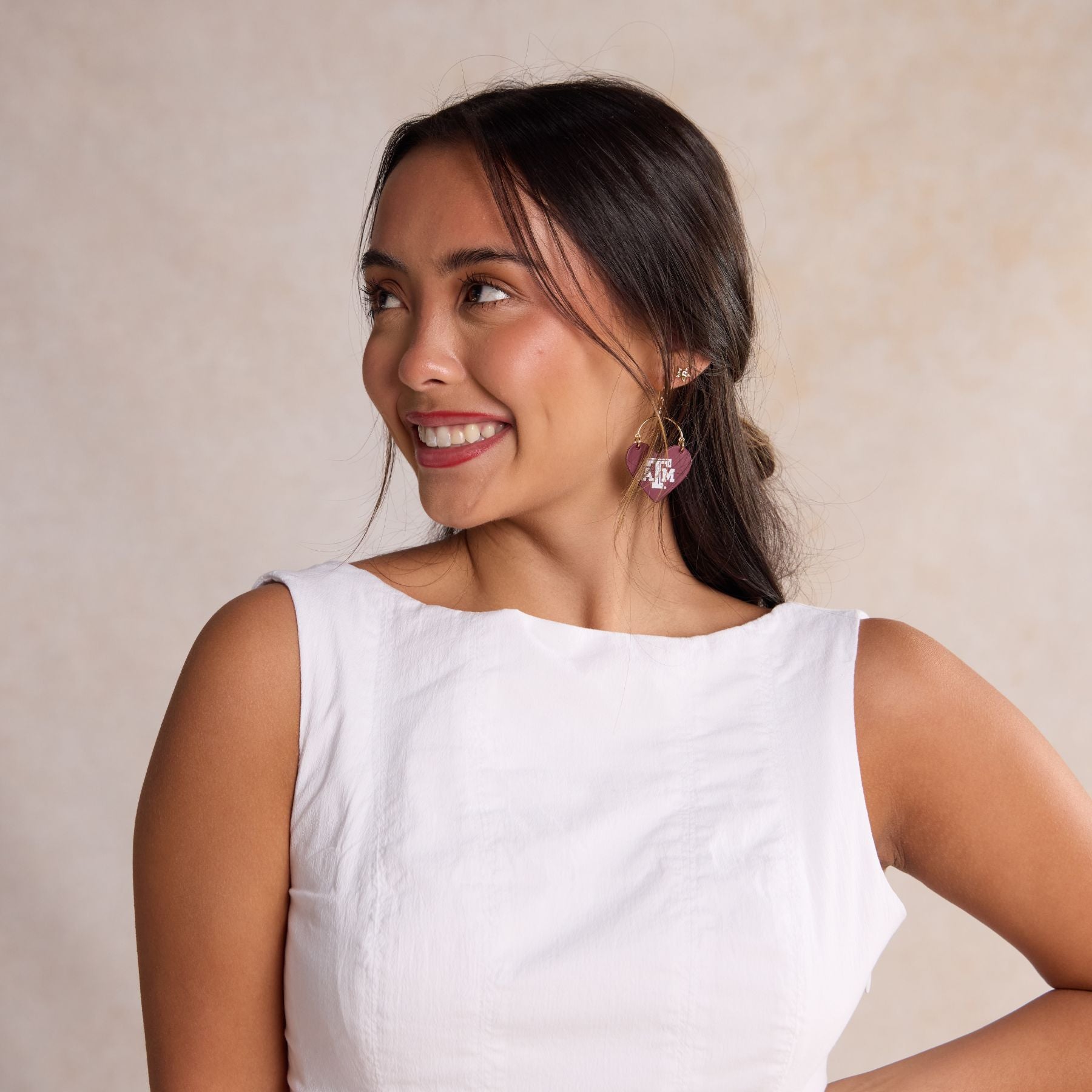 Elevate your gameday look with our Texas A&M University Lover leather earrings - the perfect accessory for passionate fans, proud alumni, and stylish students. These officially licensed earrings are crafted and hand-embossed in Kansas City from premium Italian leather for a standout look.